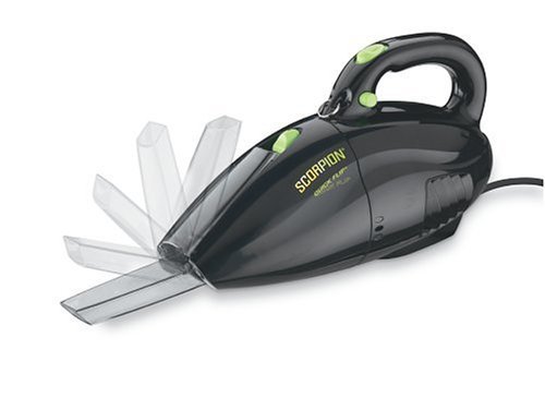 Scorpion quick flip bagless hand vac with a crevice tool.Convenient and portable, the lightweight Dirt Devil Scorpion picks up spills and small messes with ease. The 7-amp motor suctions everything from soccer-cleat dirt to cookie crumbs. Constructed of durable, black plastic, the small vessel features a 16-foot chord, optional hose with upholstery brush attachment, and a shoulder strap to ease carrying. Distinguishing itself from other Scorpions, this model offers a convenient flip-down crevice tool enabling immediate access to tight spaces--and preventing misplacement of the tool. Emptying the vacuum requires no bags; a dirt cup and filter remove easily and can be reattached with little effort. Measuring 12-1/2 by 5 by 7 inches, this product is backed by a 3 year warranty on all parts. -- Amy Arnold