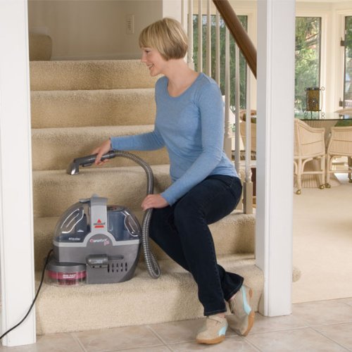 Let SpotBot do the hard work removing a stain for you! BISSELL SpotBot portable cleaner conveniently provides hands free spot cleaning. SpotBot does the work, simply select the type of stain and WalkAway™ while the preset cleaning cycles spray, brush and remove both surface and tough set-in stains at the push of a button! This efficient portable deep cleaner uses the Automatic Smart System™ to deliver just the right amount of portable machine cleaning formula for the type of stain being cleaned. In one surface stain cycle, the Unique Spiral Brushing® action completes over 400 cleaning revolutions, for thorough and effective removal of tough stains.SpotBot features unique Deep Reach Technology. This technology delivers solution further into the carpet where the deepest part of the stain resides for more effective cleaning from the bottom up! For everyday stains, use with BISSELL Little Green formula. For tough pet stains and odors, BISSELL Pet Stain and Odor portable machine formula helps remove odor causing bacteria frombacteria from carpet and rugs. Add BISSELL Oxy Gen2 formula along with either of these formulas for a boost in cleaning performance and permanent removal of tough stains.