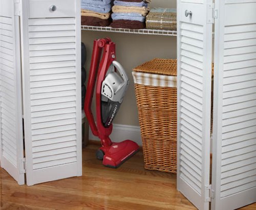 I really like this little Dirt Devil Quick Flex 2-in-1 Hand Vacuum - BD20050. Now obviously, this compact vacuum cleaner really isn't meant for those heavy duty vacuuming chores, though I have been running up my living room floor (wood) with it. Very light weight and cordless, I find it great for getting under the futon. The hand vacuum does a great job on upholstery (there is an upholstery brush included), releases and reattaches easily and is light enough that even I can use it one handed.