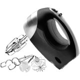 - Power Description. - Power Consumption: 250 W. - Physical Characteristics. - Color: - Black. - Chrome Beater. - Miscellaneous. - Package Contents: - Inspire 2577 Hand Mixer. - Beaters. - Dough Hooks. - Whisks. - Drink Rod. - Additional Information: - Retractable cord for easy storage.